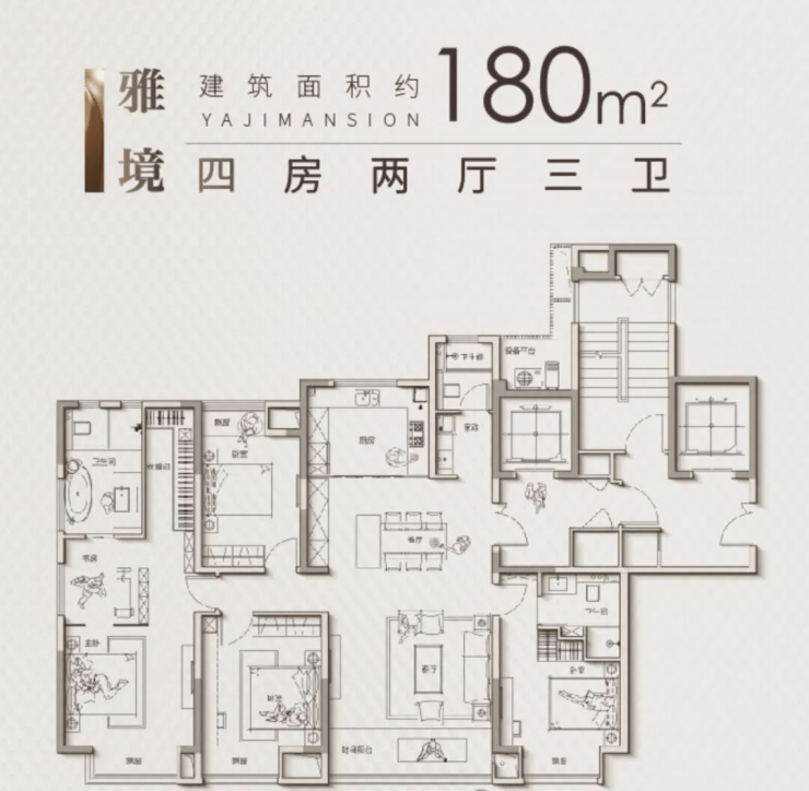 180㎡四室两厅三卫双套房设计、设备平台可容纳7件家电、LDK一体化345-390万