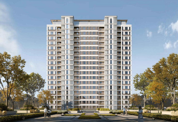 建筑外立面颜值较高,整体造型简洁典雅,与周边湿地公园景观相呼应。洋房与小高层的设计风格统一,洋房因低密属性得房率更高。