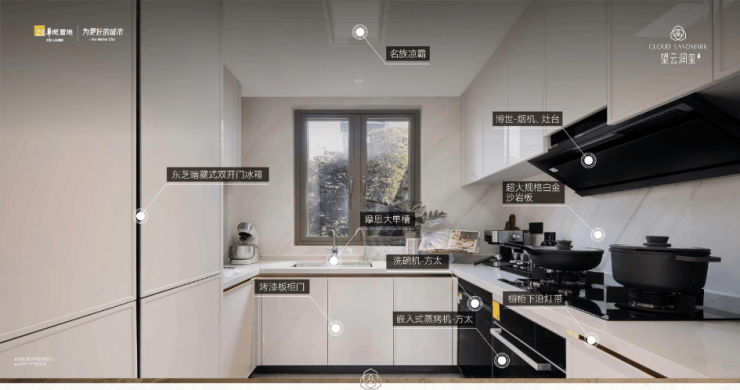 高层:西门子厨电、杜拉维特/高仪卫浴、日立中央空调、全屋地暖、华为智能家居。