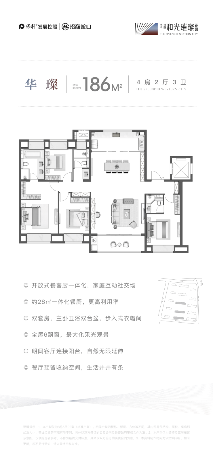 186㎡ 四室两厅三卫(洋房,得房率约86%)