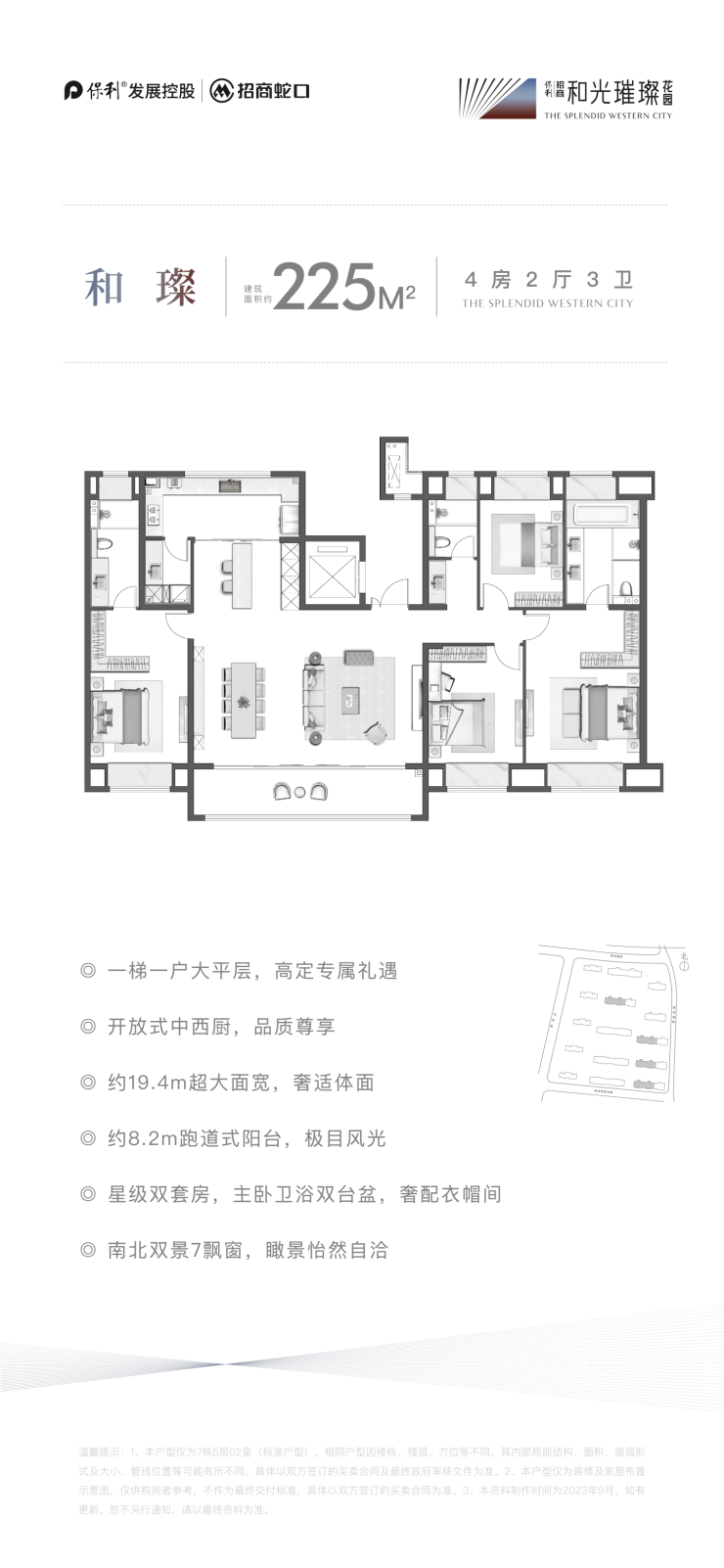 225㎡ 五室两厅三卫(洋房,一梯一户,得房率81%)
