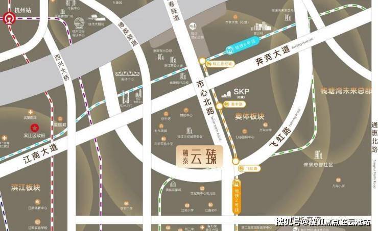 位置:萧山区钱江世纪城奥体核心区(市心北路1609号),距地铁2号线飞虹路站C出口约500米,属奥体“黄金三角”商圈,与SKP直线距离900米