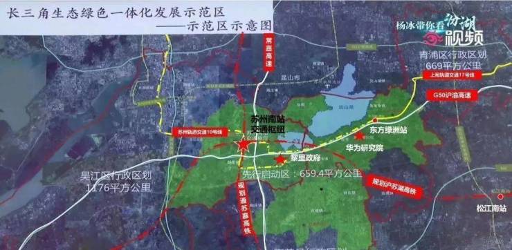 两条高铁在汾湖高新区(黎里镇)交汇,所建的高铁苏州南站(汾湖站)将成为通苏嘉甬和沪苏湖高铁十字交汇的高铁枢纽,也是长三角生态绿色一体化发展示范区最主要的对外交通门户之一。