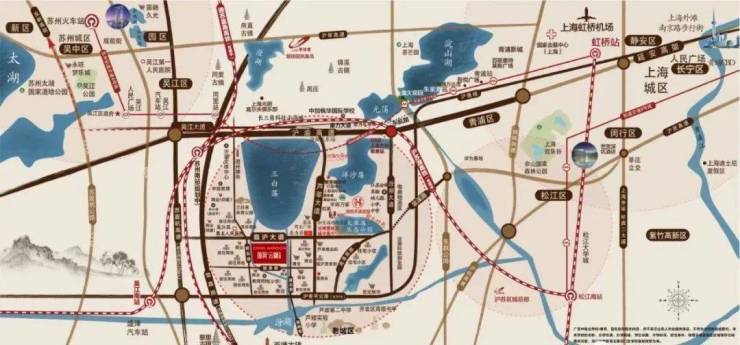 项目位于汾湖经济开发区核心区域距上海G50(沪渝)高速仅1.5公里,车程3分钟左右,5分钟就可到达上海收费站,属于上海大虹桥板块半小时辐射区。沪苏湖高铁(在建)、通苏嘉高铁 交汇于苏州高铁南站。高铁15分钟可到上海大虹桥。