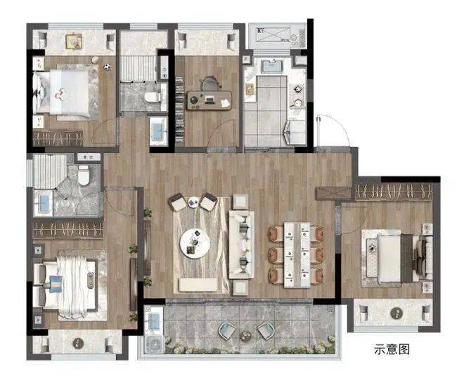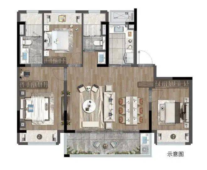 建面约143㎡样板间实拍图展示了户型设计的合理性和居住的舒适性。
