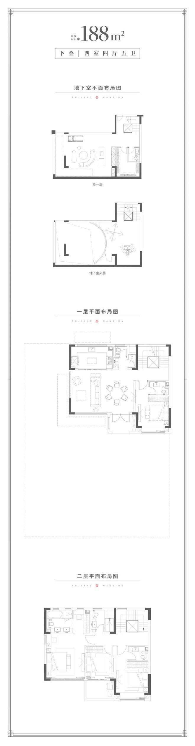 ●叠加户型-揽湖院 建面约188㎡ 下叠4室4厅5卫