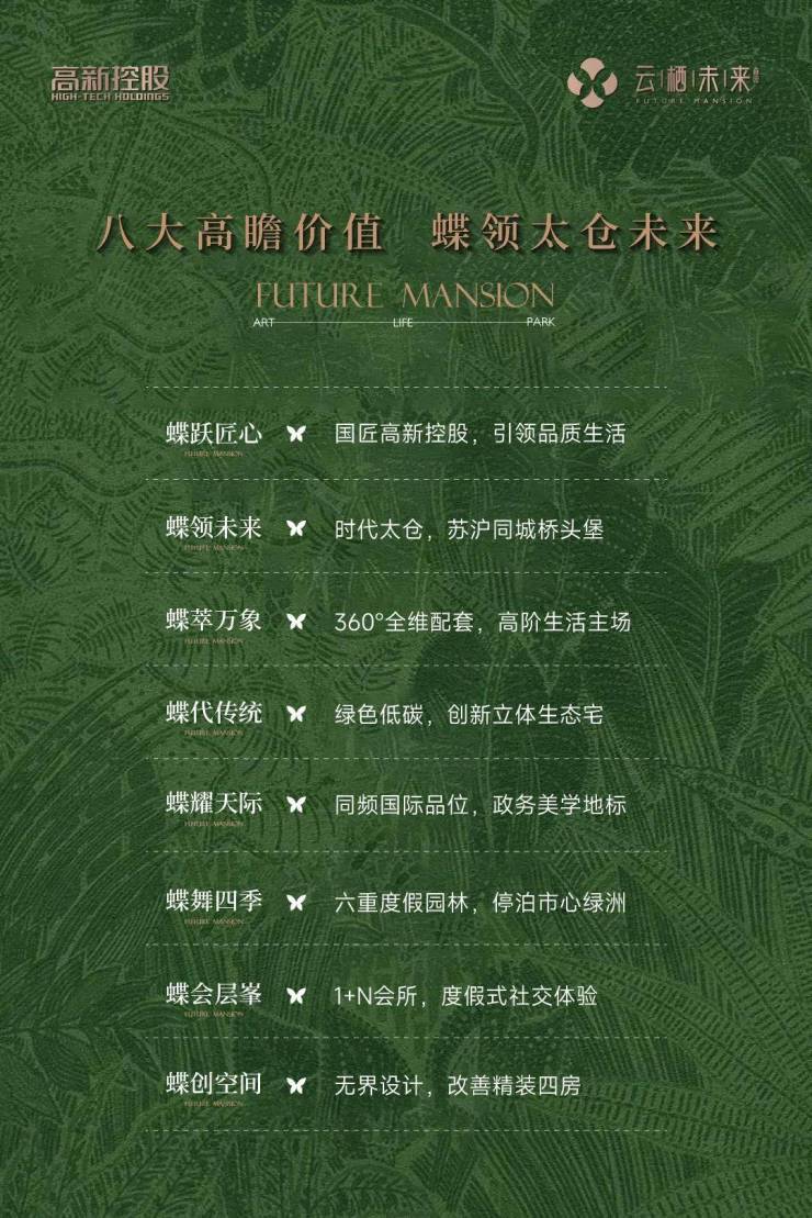 太仓高新控股,本土领军国企。32载深耕太仓,笃定建设、运营城市使命,多元布局,与太仓共奋进。截至当前,已投资开发含自操盘在内的约20个地产开发项目,矢志成为太仓品质生活领跑者。