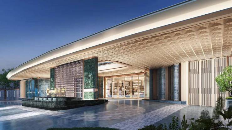 ◎ 一进 · 仪序丨威仪门庭星级酒店式环岛落客,超50米奢石双翼展面,约4米挑高香槟金色星空穹顶。