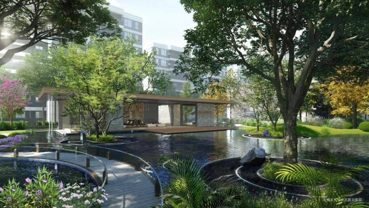 ◎ 二进 · 静心丨中央水景约600㎡镜面水景,游赏间完成从繁华到静谧的情绪过渡