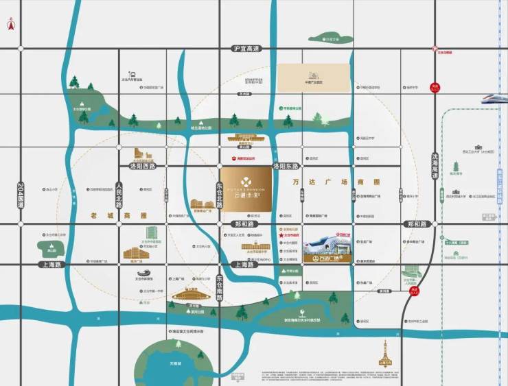 精粹揽怀 高阶生活主场落位太仓高新区核芯,约3公里生活范围内,政务/交通/商业/教育/生态/休闲/医疗等醇熟资源配套簇拥, 城芯势能执掌于怀。·政务:市政府、市税务局、人民法院、人民检察院、市公安局等·交通:东仓路、郑和路、苏州中路、太平北路等城市动脉交汇;约10KM(直线距离)即达太仓高铁站