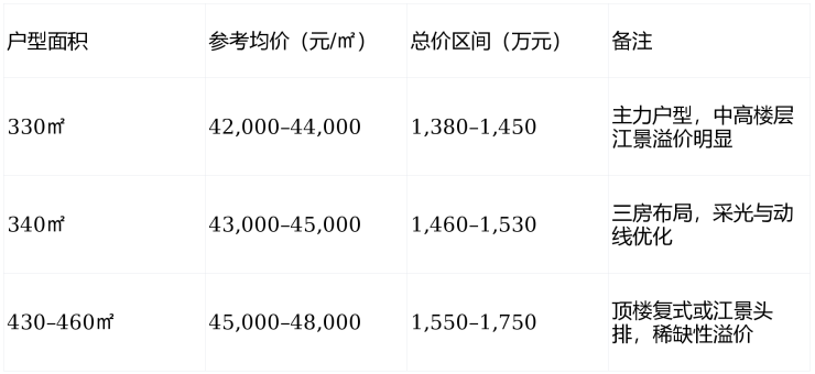 真实价格体系:均价43,000元/㎡,总价1400–1600万区间