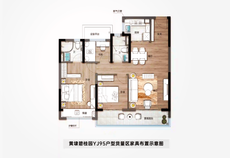 95㎡三居:南向三开间,双联宽景阳台,实得面积≈110㎡;