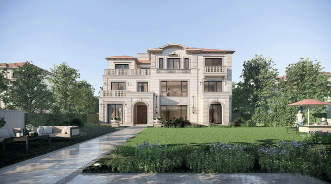 项目采用法式宫廷美学立面,黄金麻石材外立面与塞纳花园轴线设计,将虞山尚湖的自然资源与法式建筑艺术完美融合,成为常熟别墅市场的现象级作品