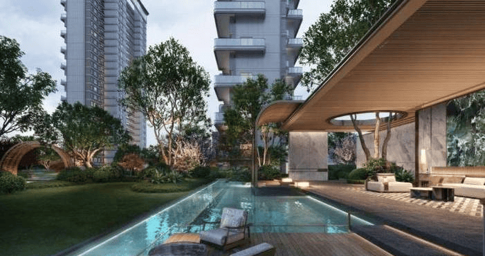 以“三园九境”立体园林重构江南风韵,融入乌篷船、苏绣纹样等元素,搭配西班牙珊瑚红、亚马逊绿等全球奢石,打造约5万方摩登江南景观