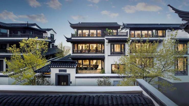 品质细节:外立面采用香槟金铝板、仿石一体板,融合江南水墨园林风格,东方美学质感突出