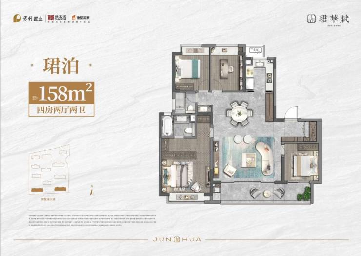 1. 户型设计:保利珺华赋项目涵盖152-222平米四种户型,从精致三房到宽敞四房,满足不同家庭的需求。户型方正,南北通透,采光充足,空间利用率高。