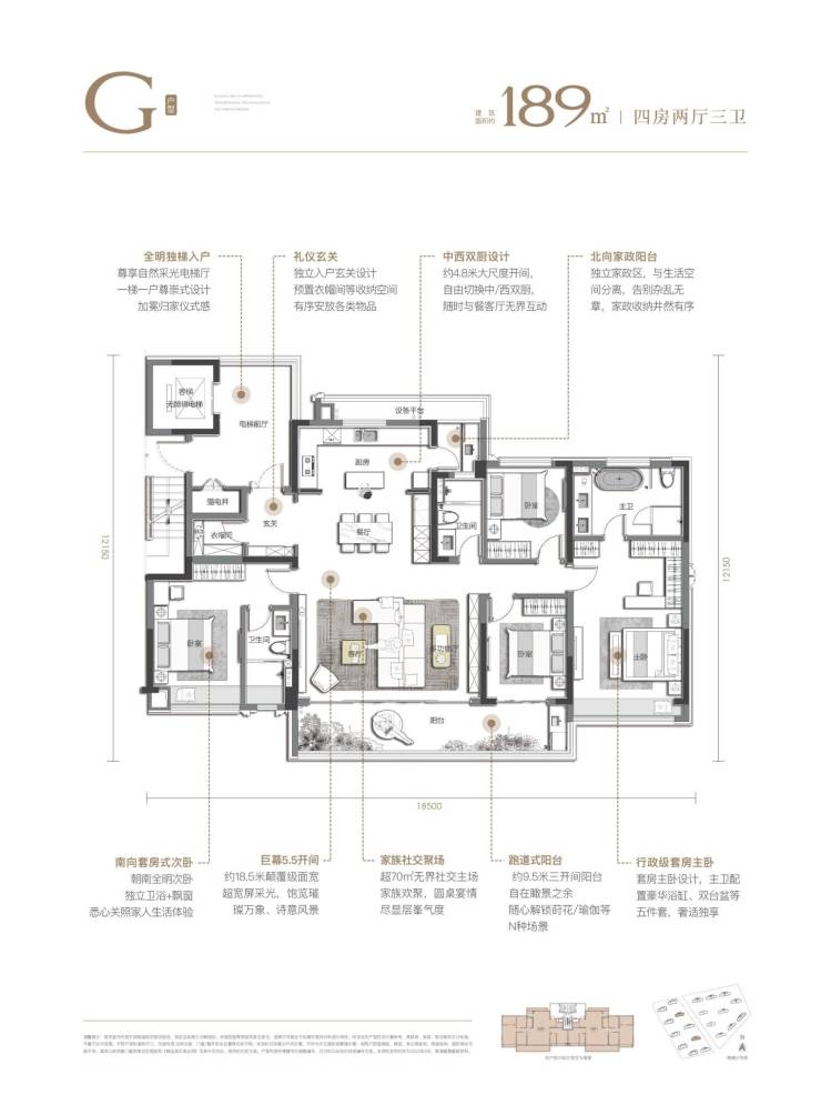 项目最引人注目的是其大胆的"户型逆行"策略——在板块内普遍开发100㎡左右高层户型时,主力户型突破到约168-189㎡,成为东湖新城近十年来最大的高层户型