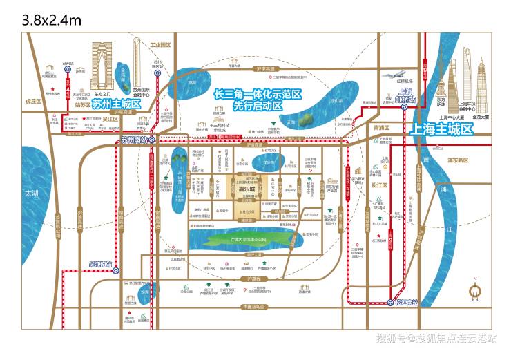 距在建苏州南站约7公里,沪苏湖高铁、通苏嘉甬城际铁路在此交汇,通车后可直达上海虹桥枢纽。