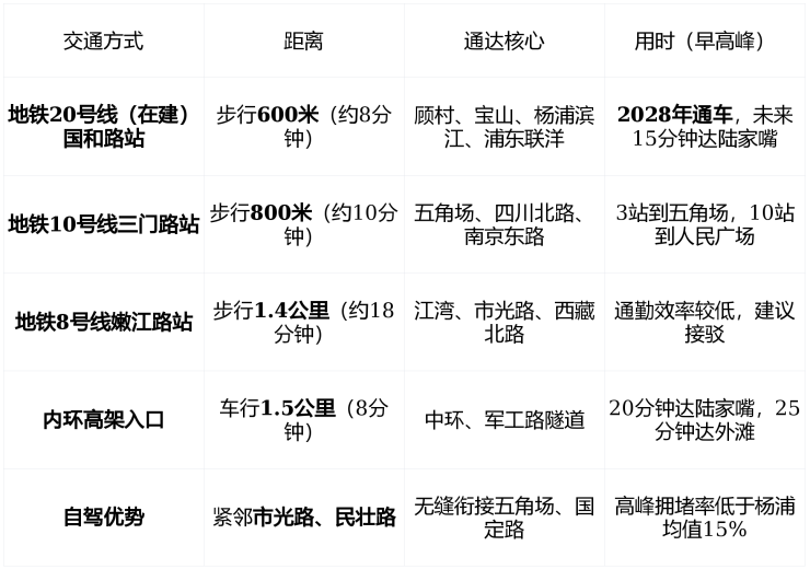 目前依赖10号线, 20号线通车前通勤体验一般 ,适合有车或可接受“地铁+接驳”组合的家庭。