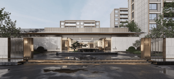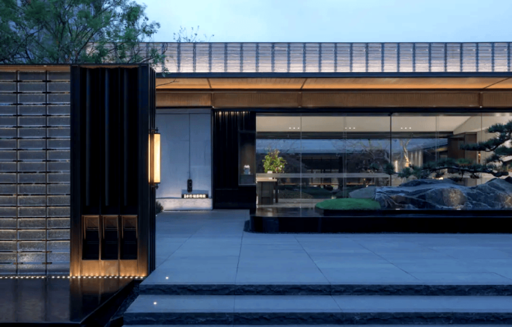 外立面采用铝板、石材与玻璃,融合“苏锦”针织美学;园林灵感源自《姑苏繁华图》,打造六大雅趣场景。