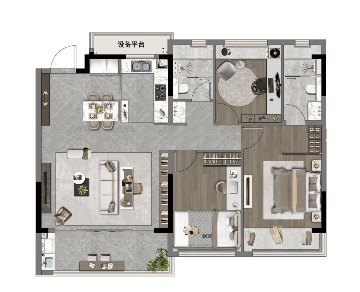 产品稀缺性:狮山板块罕见100㎡级三居产品,控总价兼顾功能性