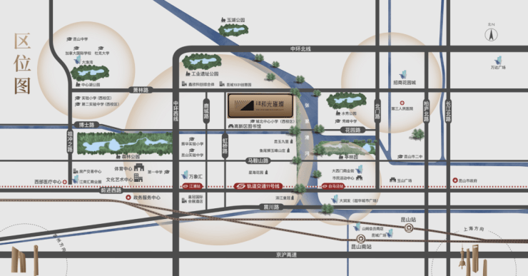 和光璀璨所在的花园路片区是昆山高新区重点发展区域,规划打造"一带两心多组团"的高端生活区: