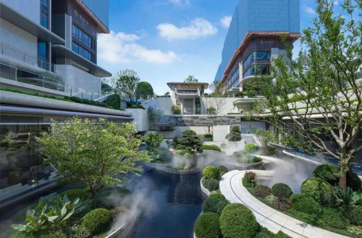 社区内部设下沉式庭院+全龄泛会所,打造“可漫步、可休憩、可社交”的立体公共空间。