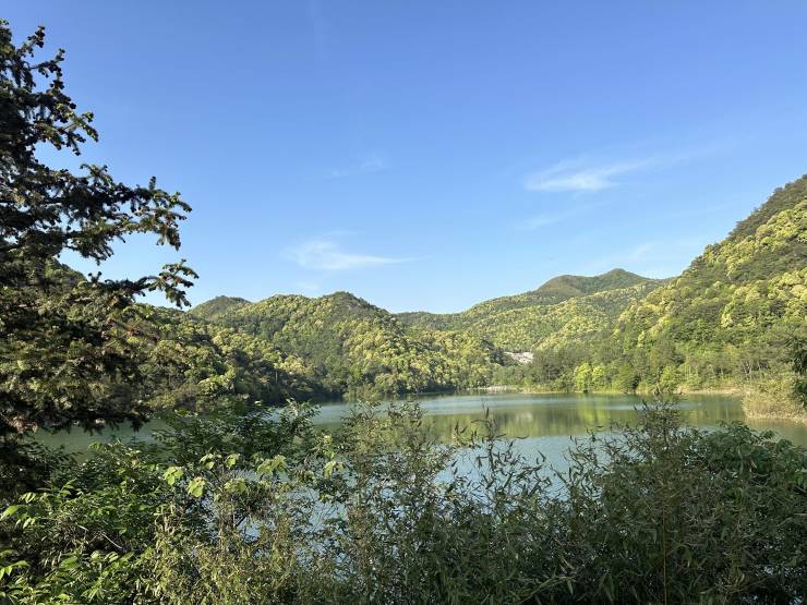 三面环山,南面临水,园区内设游步道直通山脊景观