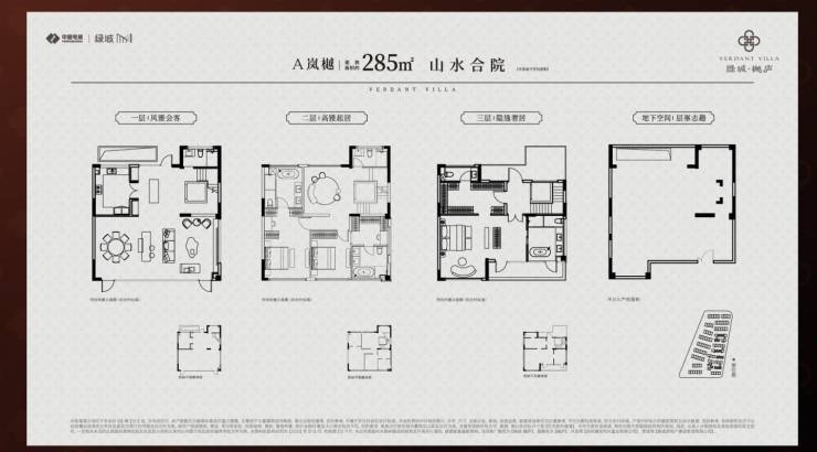 山水合院:建面约285-340㎡(3层毛坯交付),一层为公区,二层双套房,三层整层主卧套房附带南北双露台