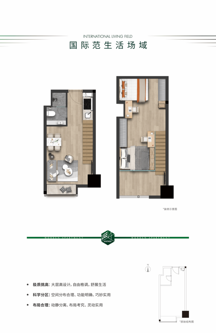 复式 挑高 精装 loft面积27/29/33/38/55m7S服务式品质公寓