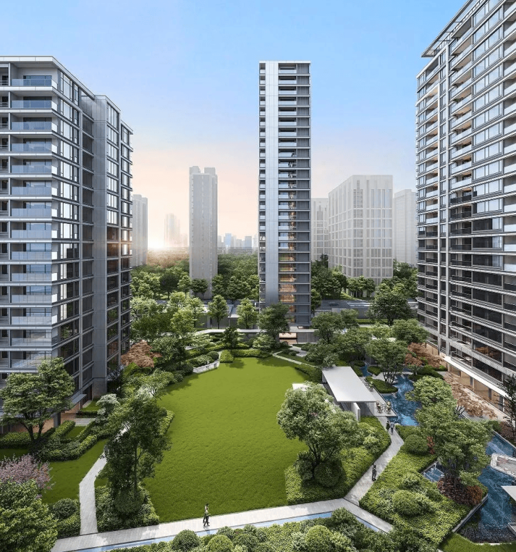 大围合式中心园林,含风雨连廊、5000㎡无界草坪