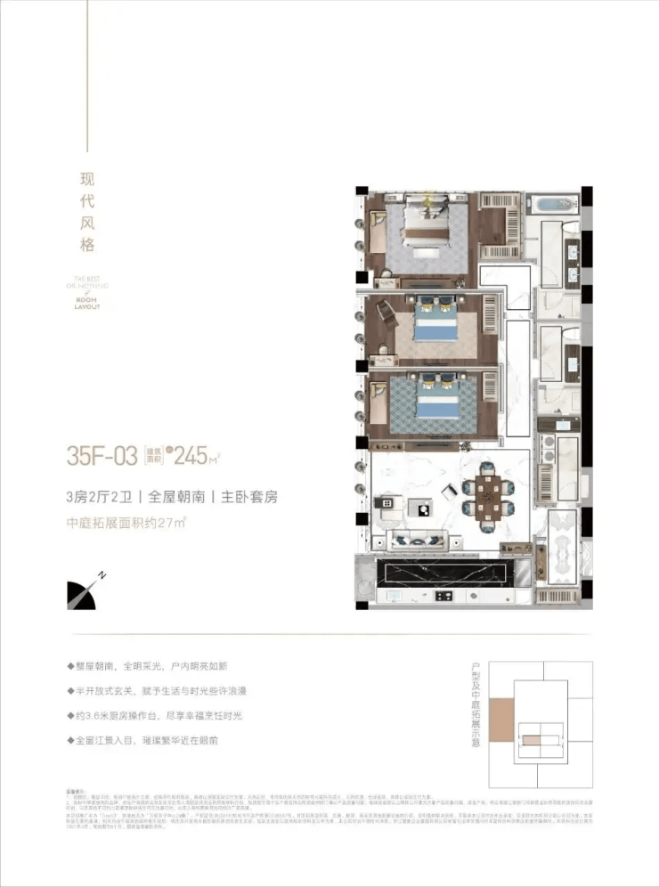 3.4米:现代轻奢风格,适用于244–279㎡户型