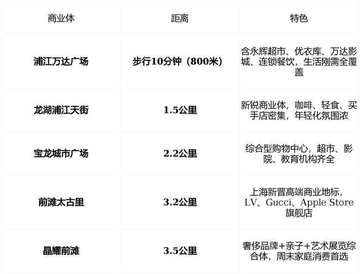 🛍️ 商业:步行10分钟达浦江万达,3公里覆盖龙湖天街