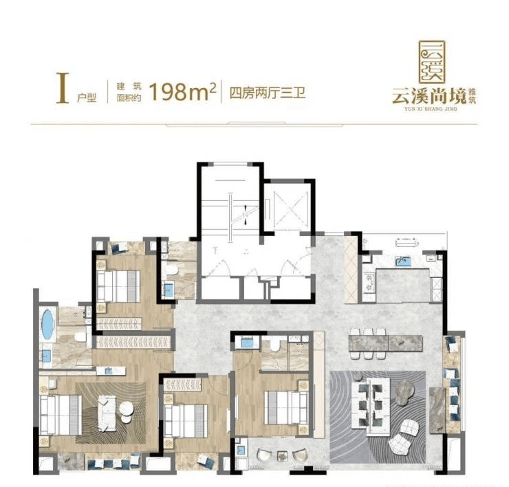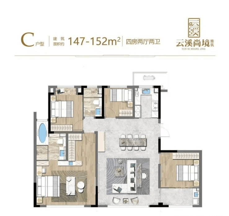 建面137-146㎡四居180-220万客餐厅面宽5.7米,主卧套间设计,适合改善型家庭