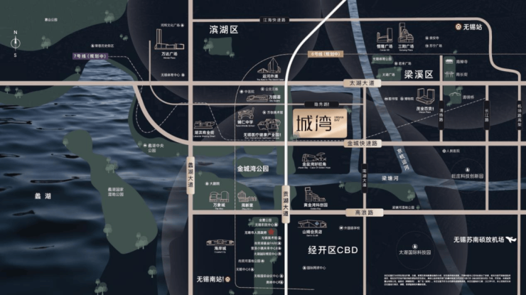 立体交通:贡湖大道、蠡湖大道、太湖大道、金城快速路等路网通达三区;紧邻规划中地铁站点。