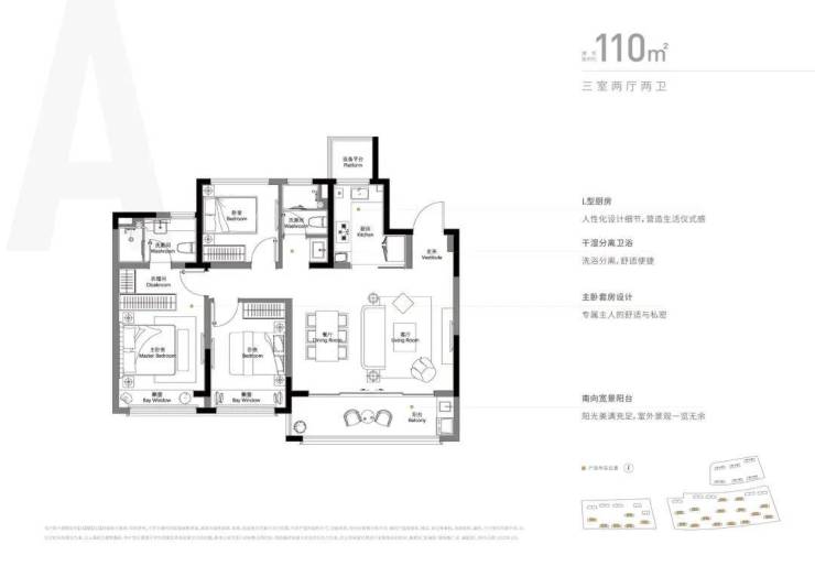 户型配置:建面约约110㎡、130㎡、143㎡三大主力户型