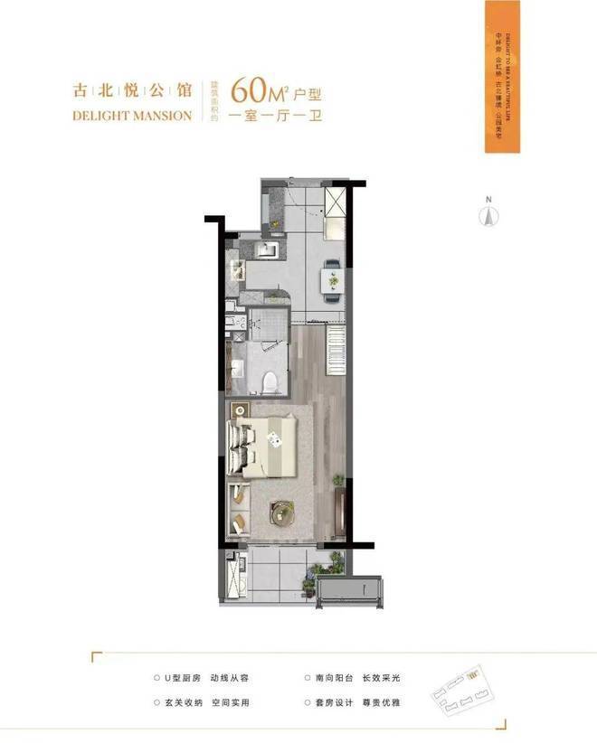 「古北悦公馆」建面约51㎡的户型▼