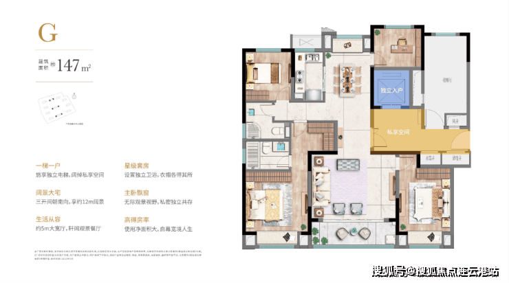 精装高层住宅:主力户型建面约147㎡(四居),含中央空调及新风系统