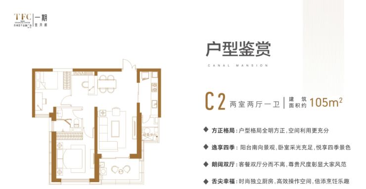 105㎡2房2厅1卫南北通透,全明格局,适合年轻家庭