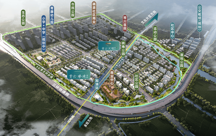 从大的地段上看,青云瑧境位于琴湖和南部新城的中间位置。