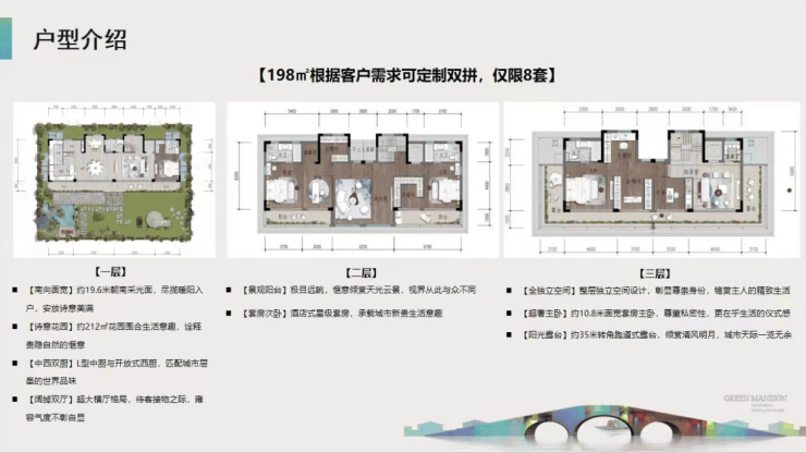 👉198m双拼: 可实现私人双拼定制,独栋花园面积约212㎡。