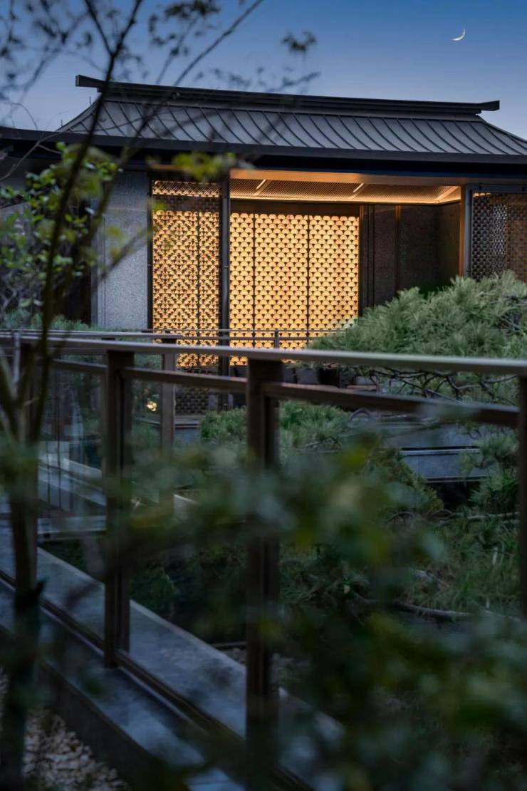 灯具的龙鳞元素在夜晚为园林增添了一丝神秘感,主题铺装的巧妙运用让空间更具层次感,而主题诗句则像一把钥匙,打开了园林中的诗意世界。如此巧思,营造出静谧的空间,让人从喧嚣的生活中抽离,归于山水间的诗画谧境。