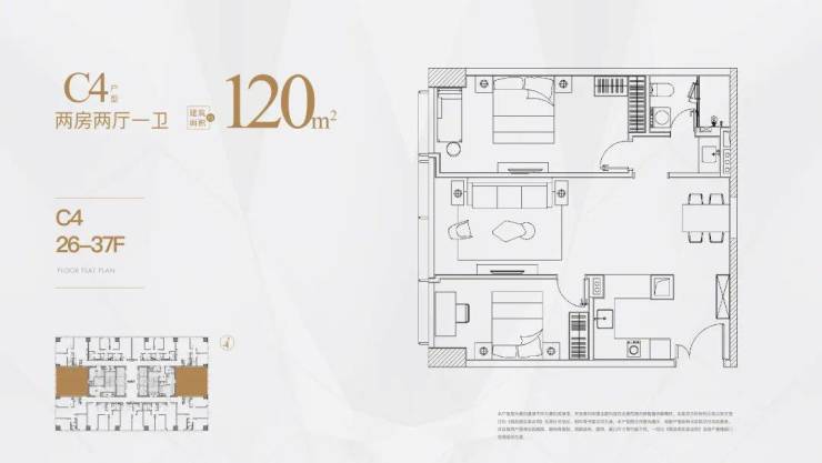 建面约105-120㎡,都是两房户型👇