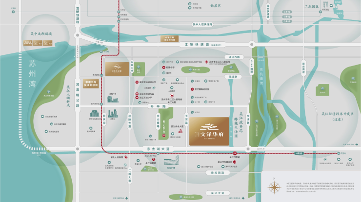 主干道路:东太湖大道、松陵大道贯穿,快速连接吴江主城区与苏州工业园区