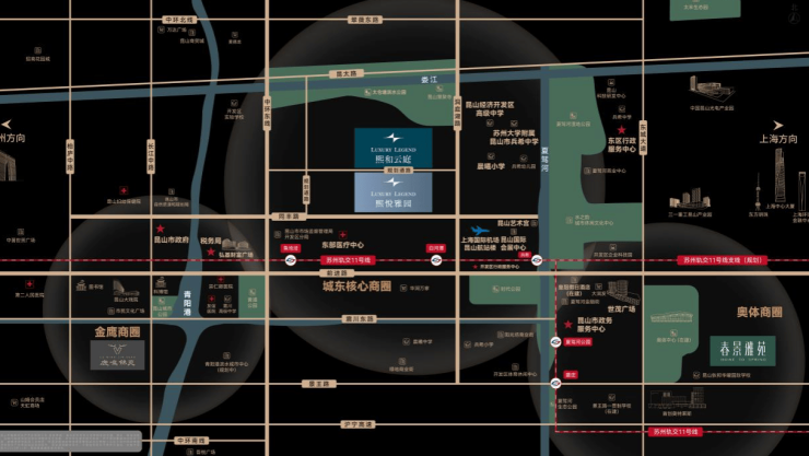 自驾:紧邻中环东线、前进东路等主干道,18分钟可达上海安亭地铁站,30分钟车程覆盖上海虹桥机场,非常适合“候鸟家庭”在沪工作、昆山安家