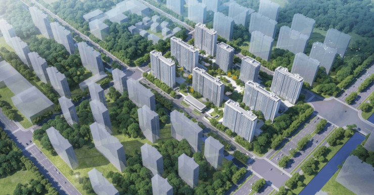 建筑规划:共9栋16–17层小高层,总户数536户,容积率2.0,绿化率30%