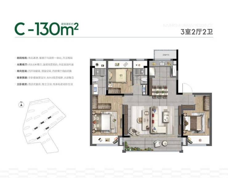 主力户型:建面约105㎡、建面约130㎡、建面约143㎡
