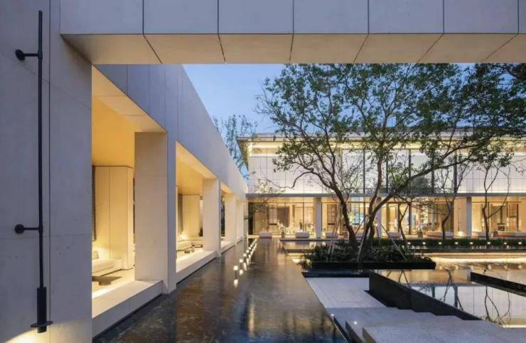 园林设计融合东方美学,连廊、光影、水景营造“生于山林、安于野”的度假氛围