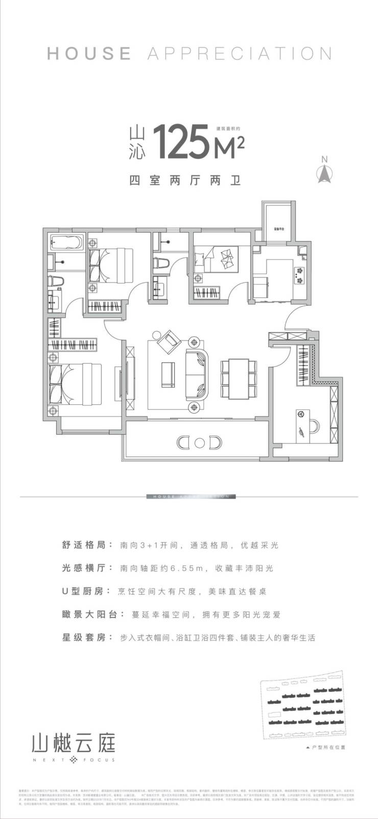剩余房源 : 总户数1002席,剩余不足80席 , 全为105㎡–125㎡三至四居洋房 , 无高层、无叠墅、无公寓 ,纯低密社区,圈层纯粹。
