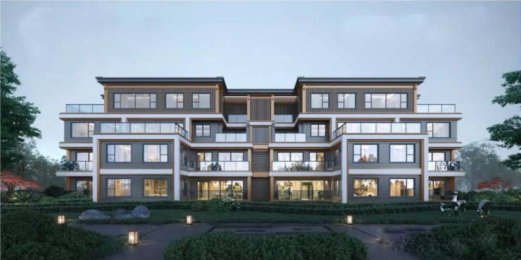 禅境美学: 以"空、象、简、朴"为设计理念,打造三进归家礼序,外立面采用浅灰真石漆与铝板,屋顶飞檐设计强化中式韵味